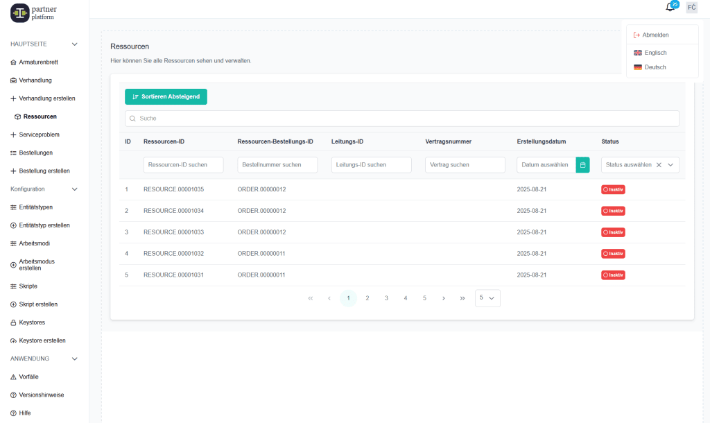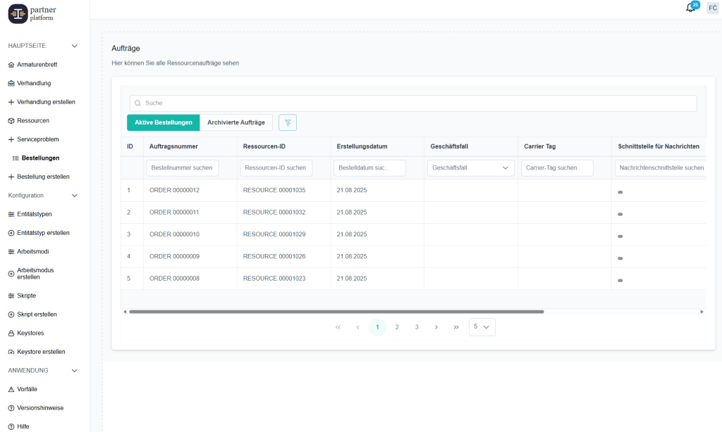 - TMF-API-Integration (Service- und Ressourcenbestellung)