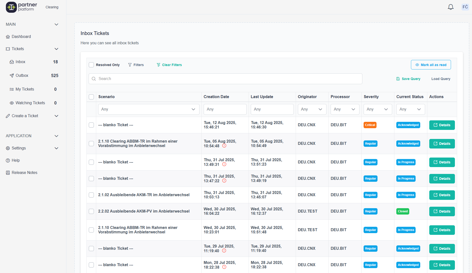 In the past, clearing processes were based on bilateral, email-based communication, leading to inefficiencies, inconsistencies, and data protection concerns. To address these challenges, the Clearing Platform application digitizes processes and introduces a unified, digital ticketing system that increases process efficiency, reduces redundant requests, and ensures transparency for all parties involved.
